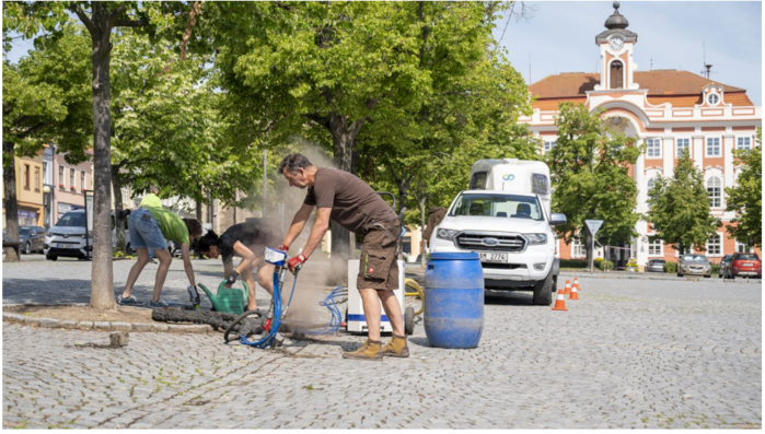 Půdní injektáž lip na náměstí J. Žižky z Trocnova proběhla ve středu 29. 5. a v pátek 31. 5. pod taktovkou společnosti Groown s. r. o., která vyhrála výběrové řízení. Pomocí speciálního injektážního stroje byly kolem stromů provedeny injektážní vpichy. Vysokým tlakem vzduchu došlo k provzdušnění půdy v mezikořenovém prostoru a ke zlepšení absorpce vody.